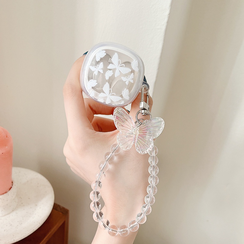 Ốp Điện Thoại Baseus Bowie WM02 TWS Bằng TPU Mềm Trong Suốt Họa Tiết Hoa Và Bướm Dễ Thương Kèm Dây Đeo Cho Encok WM01