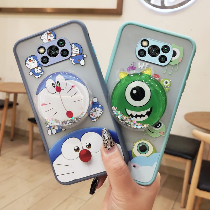 Ốp điện thoại có gắn giá đỡ họa tiết hoạt hình dễ thương cho Xiaomi Poco X3 Nfc / X3 Pro / X3