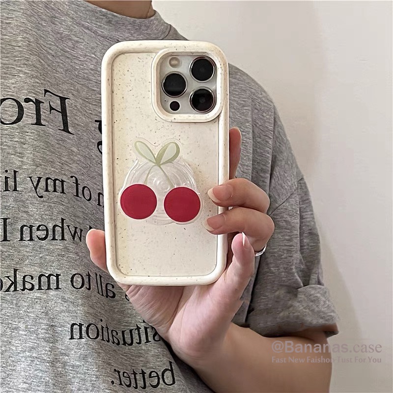 Ốp Điện Thoại Dẻo Họa Tiết Hoa + Giá Đỡ Hình Trái cherry Cho iphone 14 13 12 11 pro max x xr xs max 7 8 6 6s plus se2020