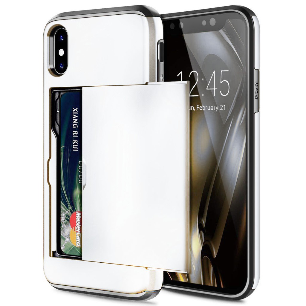 Ốp điện thoại dụng ví cắm thẻ kiểu áo giáp doanh nhân trượt cho iPhone X XS Max XR 7 8 Plus 6 6s
