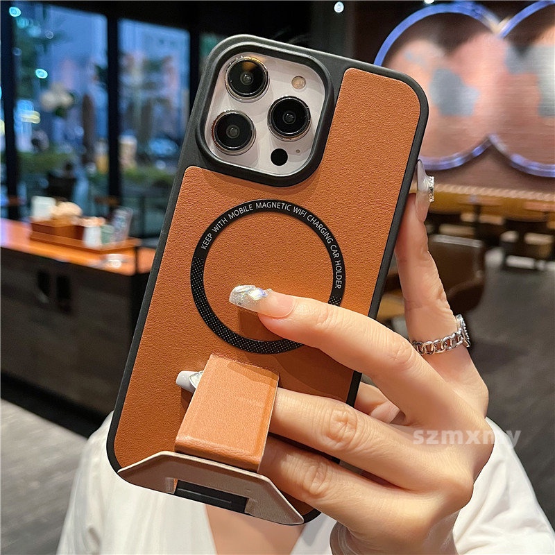 Ốp Điện Thoại Da Có Đế Đỡ Từ Tính Cho IPhone 13 11 14 12 Pro Max