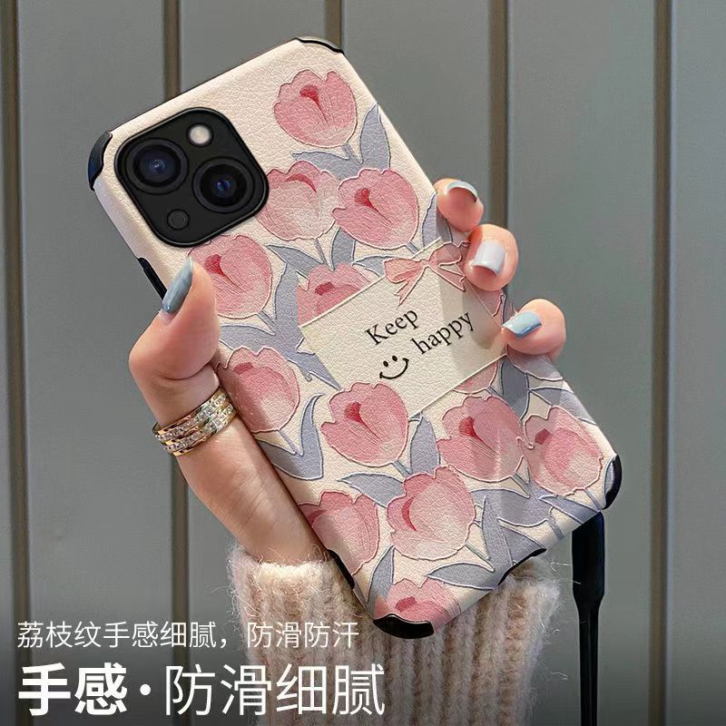 Ốp Điện Thoại Da Cừu Mềm Chống Sốc Hình Hoa Tulip Cho iphone 11 12 pro max 13 / 6 / 7 / 8plus / X max