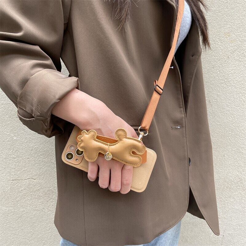 Ốp Điện Thoại Da Chống Sốc Hình Hươu Cao Cổ Có Dây Đeo Cho iPhone 13 Pro Max X XR XsMax 11 12