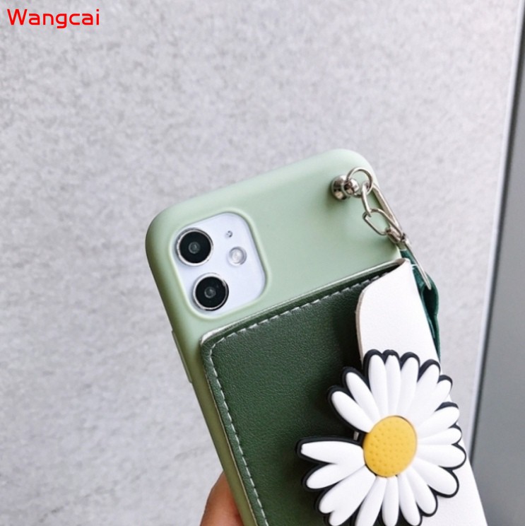 Ốp điện thoại da dạng ví đựng thẻ hình hoa cúc có dây cho Samsung Galaxy A90 A80 A70 A60 A50 A50S A30S A40 A30 A20 A10