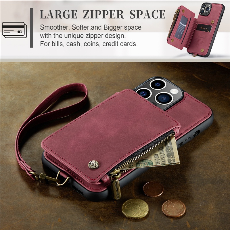 Ốp Điện Thoại Da Kèm Ngăn Đựng Thẻ Có Khóa Kéo Chất Lượng Cao Cho IPhone 14 13 12 Mini 11 Pro Xs Max