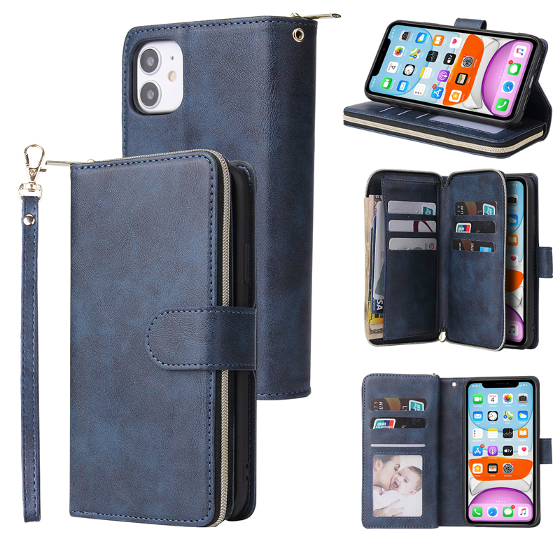 Ốp Điện Thoại Da Kèm Ngăn Đựng Thẻ Có Khóa Kéo Cho IPhone 13 12 Mini 11 Pro Xs Max XR I8 I7 Plus SE2020