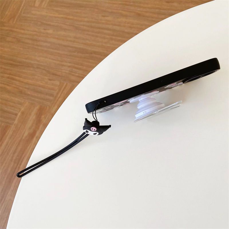 Ốp Điện Thoại Hình Kuromi Nhật Bản Màu Đen Đục Có Giá Đỡ Và Dây Đeo Cho iPhone 4 Trong 1 14 Pro Max 13 Promax 12 11 Xsmax Xr 7 8 Plus