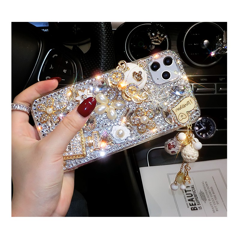 Ốp Điện Thoại Họa Tiết Hoa Đính Đá Lấp Lánh Cho iphone 15 14 13 12 pro max 12 11 pro max x xr xs 7 8 plus