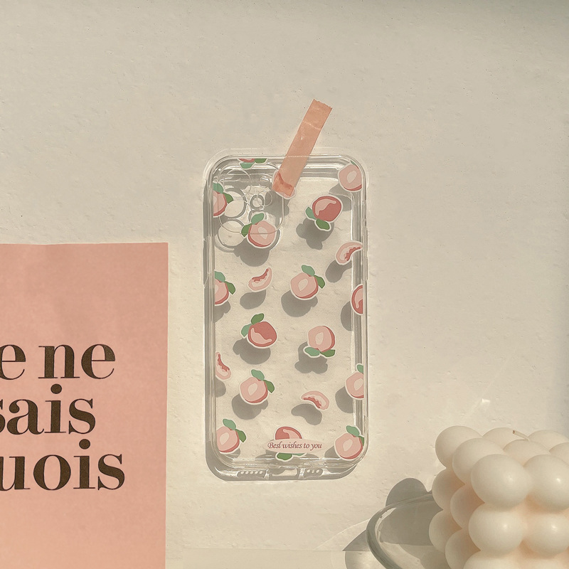 Ốp điện thoại họa tiết quả đào có giá đỡ cho For Phone Case 12 12Pro 12/11Promax 11 8 Plus 12 Mini 7 8 X XsMax