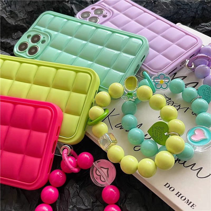 Ốp Điện Thoại IMD Hình Vuông Họa Tiết Kẻ Ô 3D Màu Xanh Bạc Hà / Xanh Lá / Đỏ Cho iphone 13 pro max 12 pro max 11 pro max XS max XR X XS