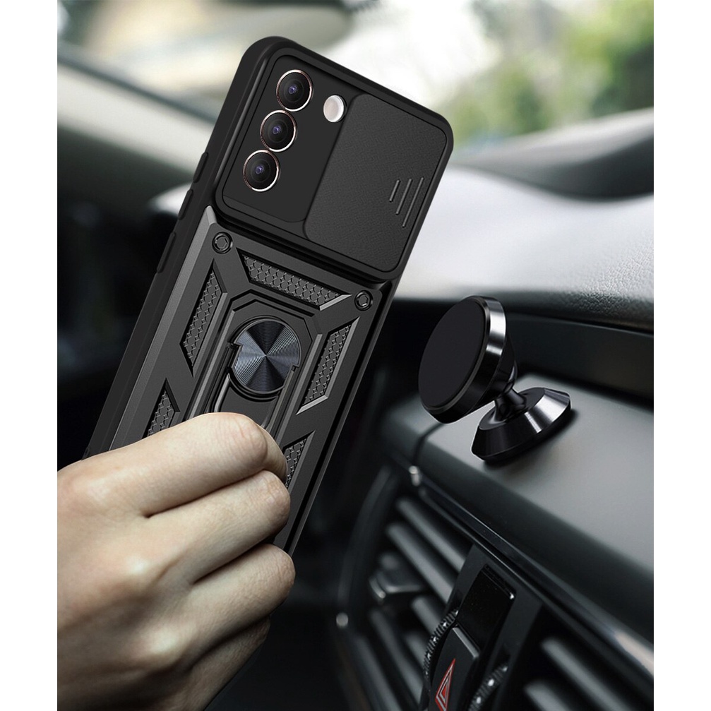 Ốp điện thoại kiểu giáp có nhẫn đỡ từ tính sang trọng cho SAMSUNG GALAXY S21 S20 ULTRA+ FE 5G