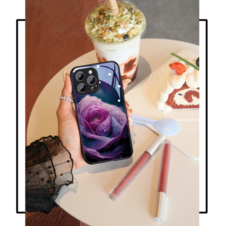 Ốp Điện Thoại Mặt Kính Họa Tiết Hoa Hồng Cho iphone15promax 15Proốp iphone/ốp lưng iphone