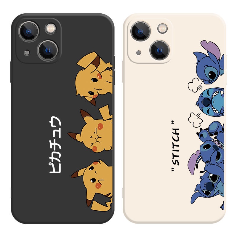 Ốp Điện Thoại Mặt Kính Chống Sốc In Hình Pikachu / Stitch Cho iPhone 14 13 mini 12 11 Pro Max X XS SE2 SE3