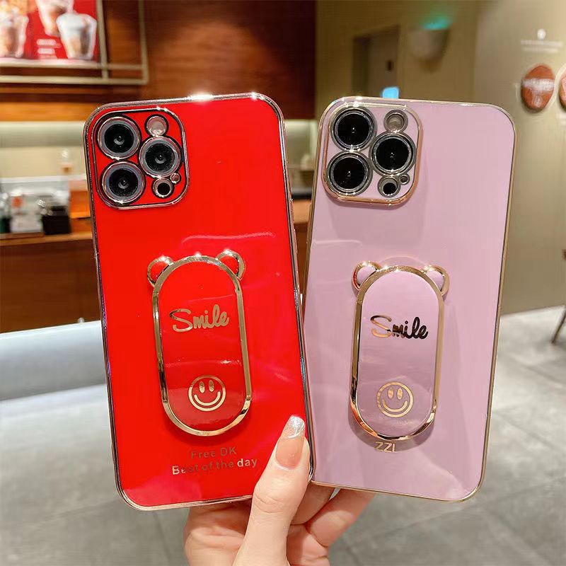 Ốp Điện Thoại Mềm Bóng Có Giá Đỡ Hình Mặt Cười Cho iphone 14 plus 13 12 11 pro max x xs xr