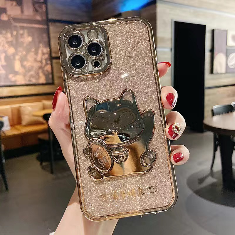 Ốp Điện Thoại Mềm Hình Mèo May Mắn 3D Mạ Điện Cho Iphone 13 12 11 Pro Max