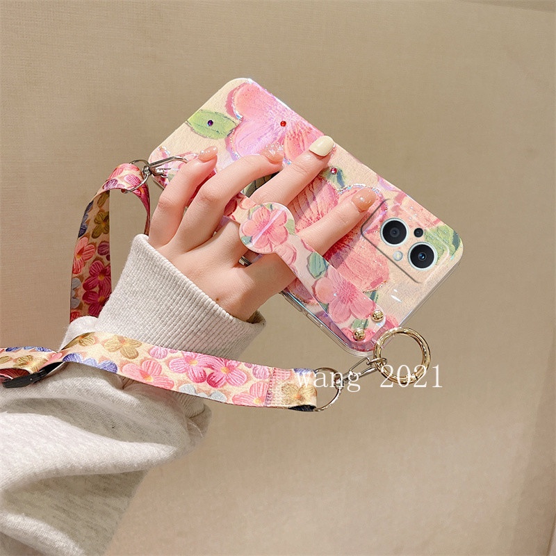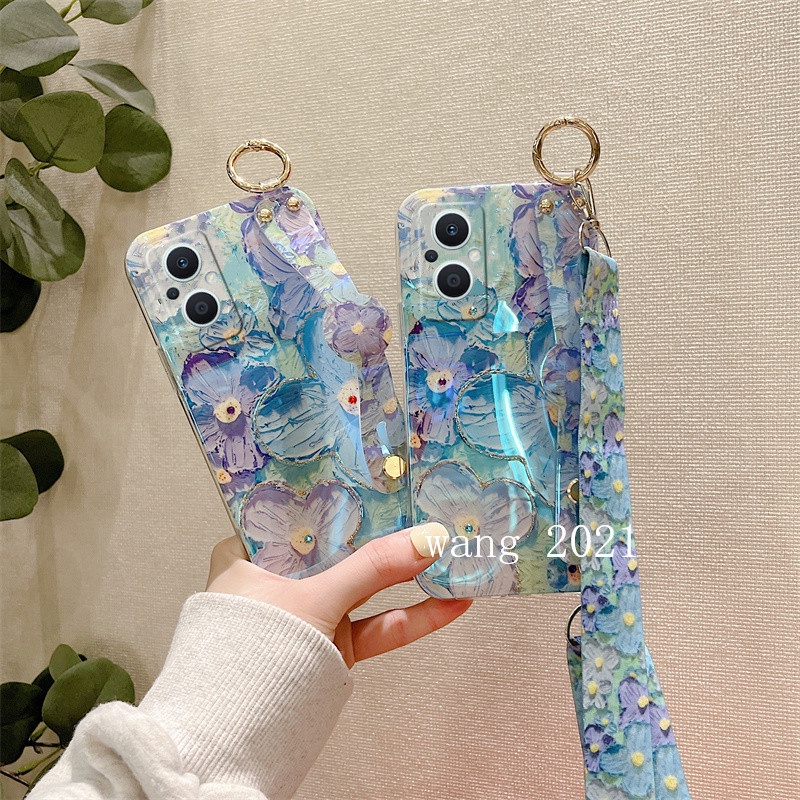 Ốp Điện Thoại Mềm Họa Tiết Hoa Đính Đá Gắn Dây Đeo Cổ Tay Làm Vòng Đỡ Phối Dây Treo 2022 Cho OPPO Reno8 Z Reno8 Pro 5G