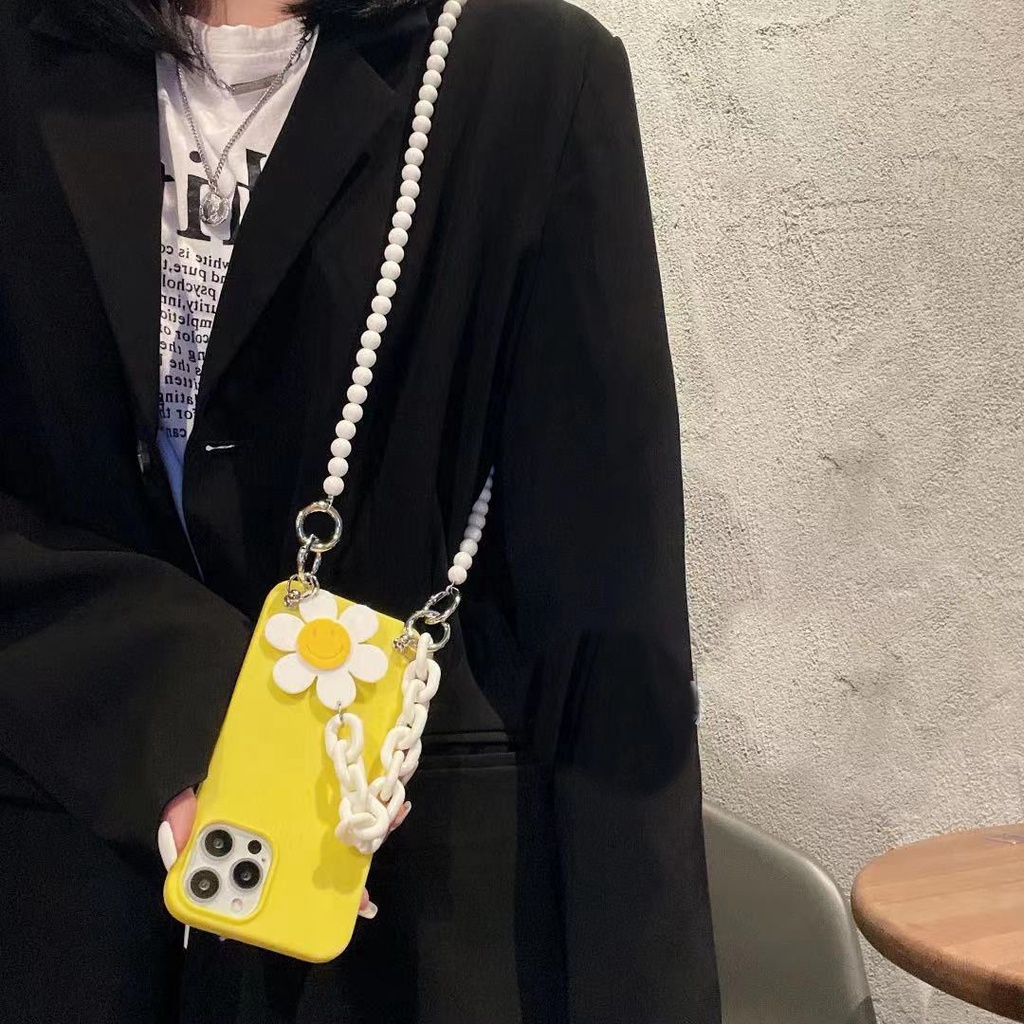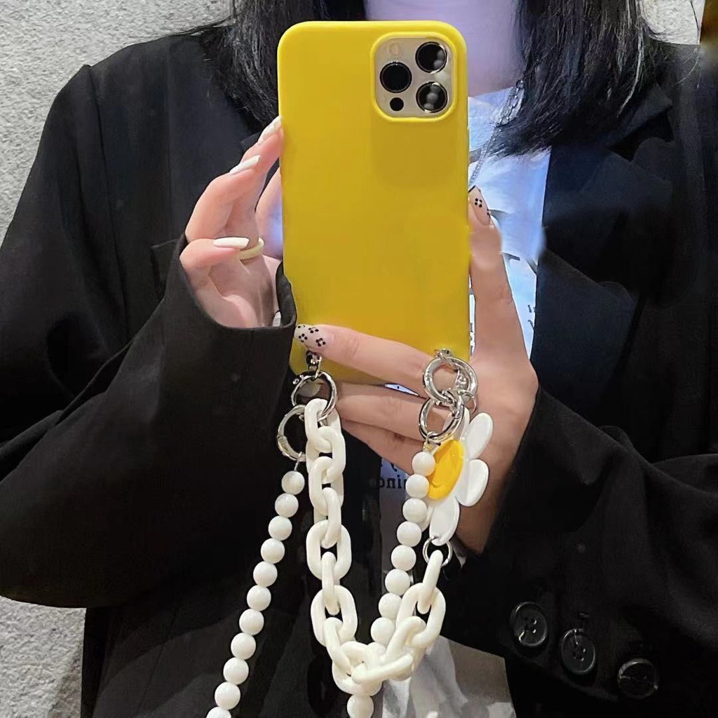 Ốp Điện Thoại Mềm Họa Tiết Hoa Có Dây Đeo Chuỗi Hạt Cho iphone15 14 13pro 12 11 xsmax xr x / xs 7 / 8plus 11pro se2020 6s