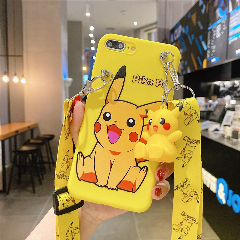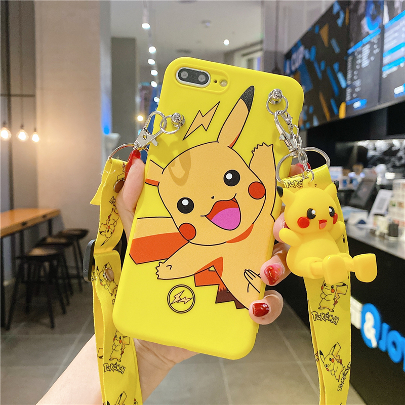 Ốp điện thoại mềm họa tiết Pikachu có dây đeo dành cho iPhone 6 6s 7 8 Plus X XS Max XR 11 Pro Max