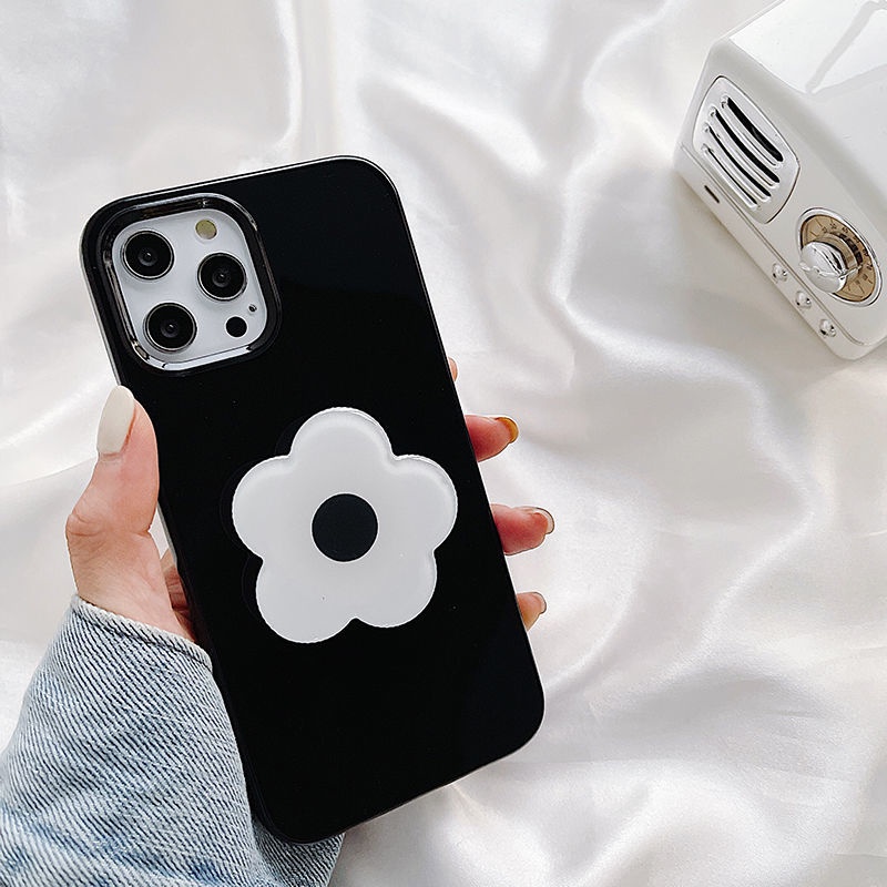 Ốp Điện Thoại Mềm In Hình Hoa Trắng Đen Có Giá Đỡ Cho iPhone7/8plus X/Max/XR 12/11ProMax