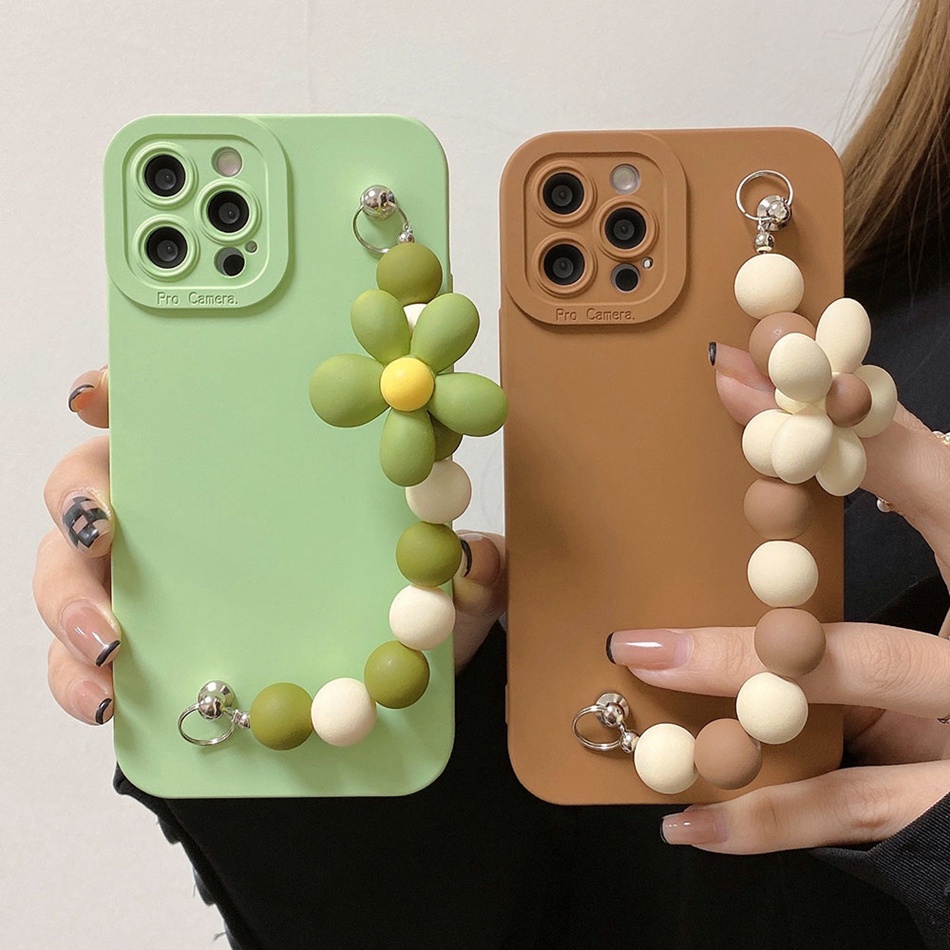 Ốp Điện Thoại Mềm Nhám Gắn Dây Đeo Hình Hoa 3D Cho iPhone 7 8 6 6S Plus 11 12 13 14 Pro MAX X XR XS MAX Mini SE 2020 2022