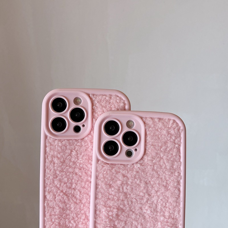 Ốp Điện Thoại Nhung Lông Mềm Hình Gấu teddy Màu Hồng Cho iphone 7 8 plus se x xr xs max 11 12 13 14 15 pro max 14 15 plus