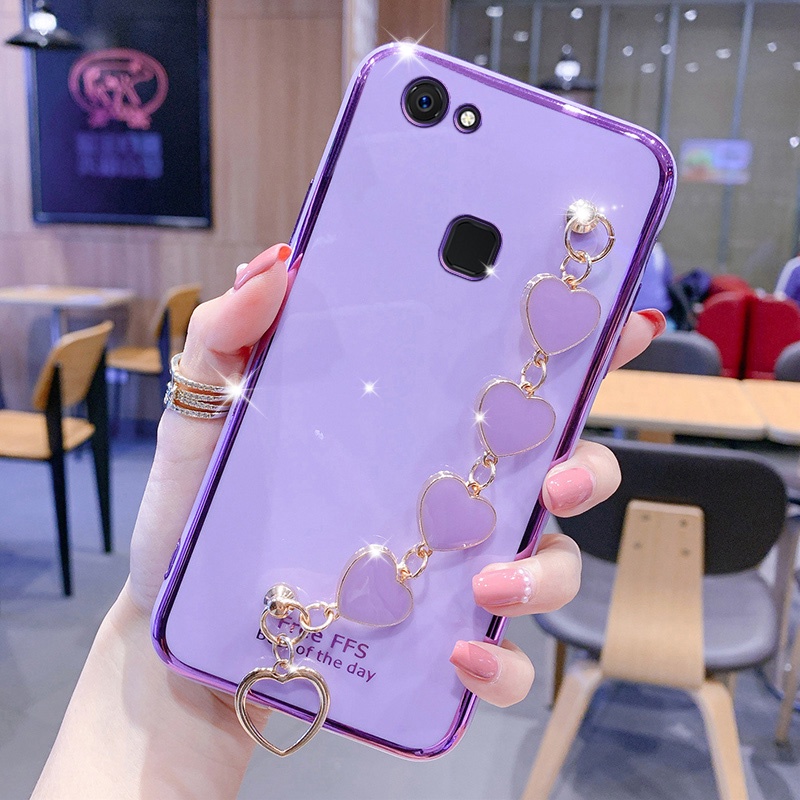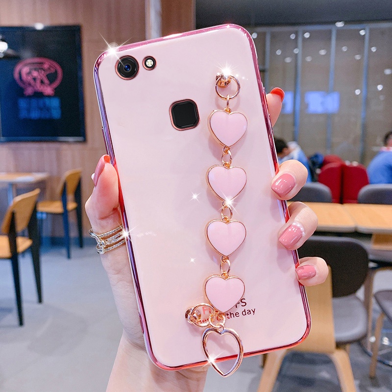 Ốp điện thoại silicon mềm có dây đeo tay trái tim cho VIVO V7 PLUS V7