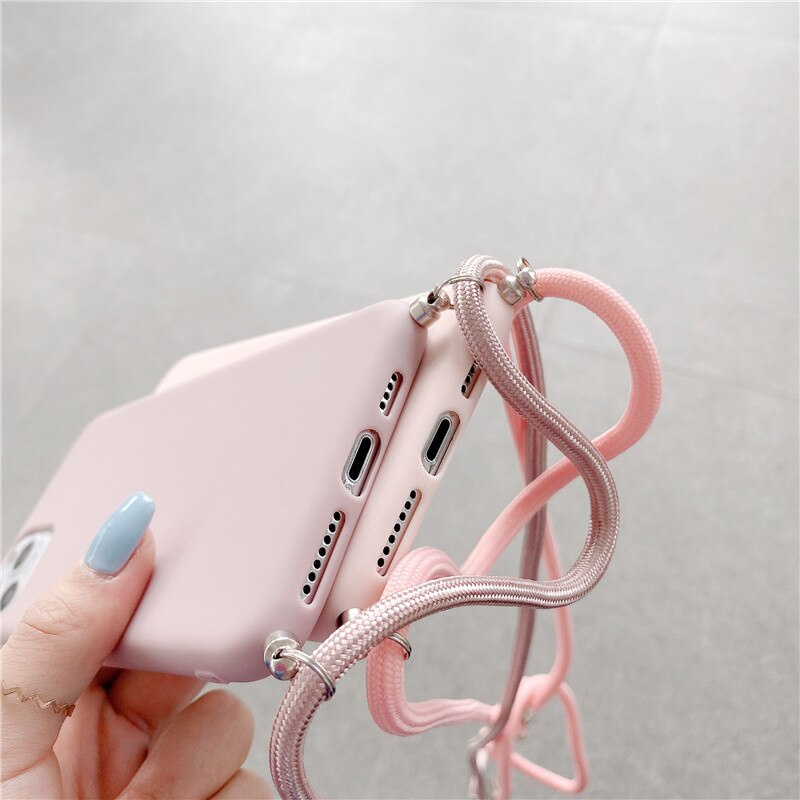 Ốp điện thoại silicon mềm màu kẹo có dây đeo chéo thích hợp cho iphone 13 12 Pro Max 11 Pro Max 7 8 plus SE 2020