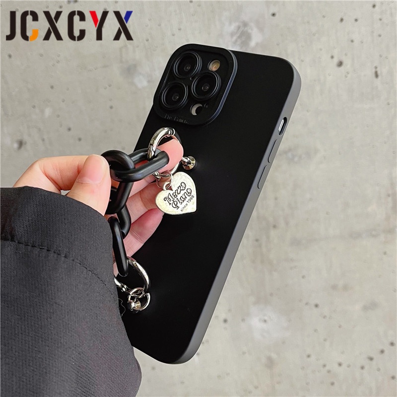 Ốp Điện Thoại Silicon Mềm Nhám Phối Dây Xích Cho IPhone 13 12 11 14 Pro Max 13 MiNi XS XR X 8 7 Plus SE 2