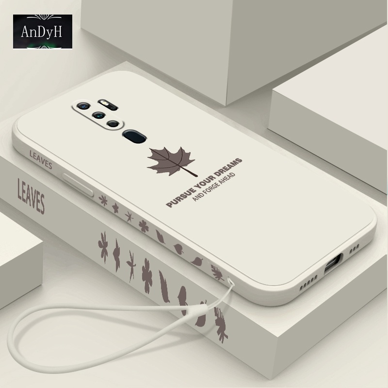 Ốp điện thoại silicon nhám hình lá phong có dây đeo cho Oppo A8 A31 2020 A5 2020 A9 2020 A11X A52 A72 A92 A92S A91