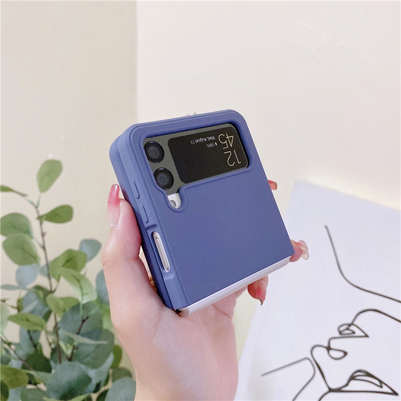 Ốp Điện Thoại Silicone Mỏng Màu Trơn Có Giá Đỡ Dạng Vòng Tròn Cho Z Flip 3 5G Z Flip4