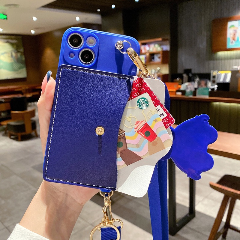 Ốp Điện Thoại Thời Trang Có Ngăn Đựng Thẻ Và Dây Đeo Cho IPHONE 14 12 MINI 13 PRO MAX 11 X XS MAX XR 5 5SE 6 6S 7 8 PLUS