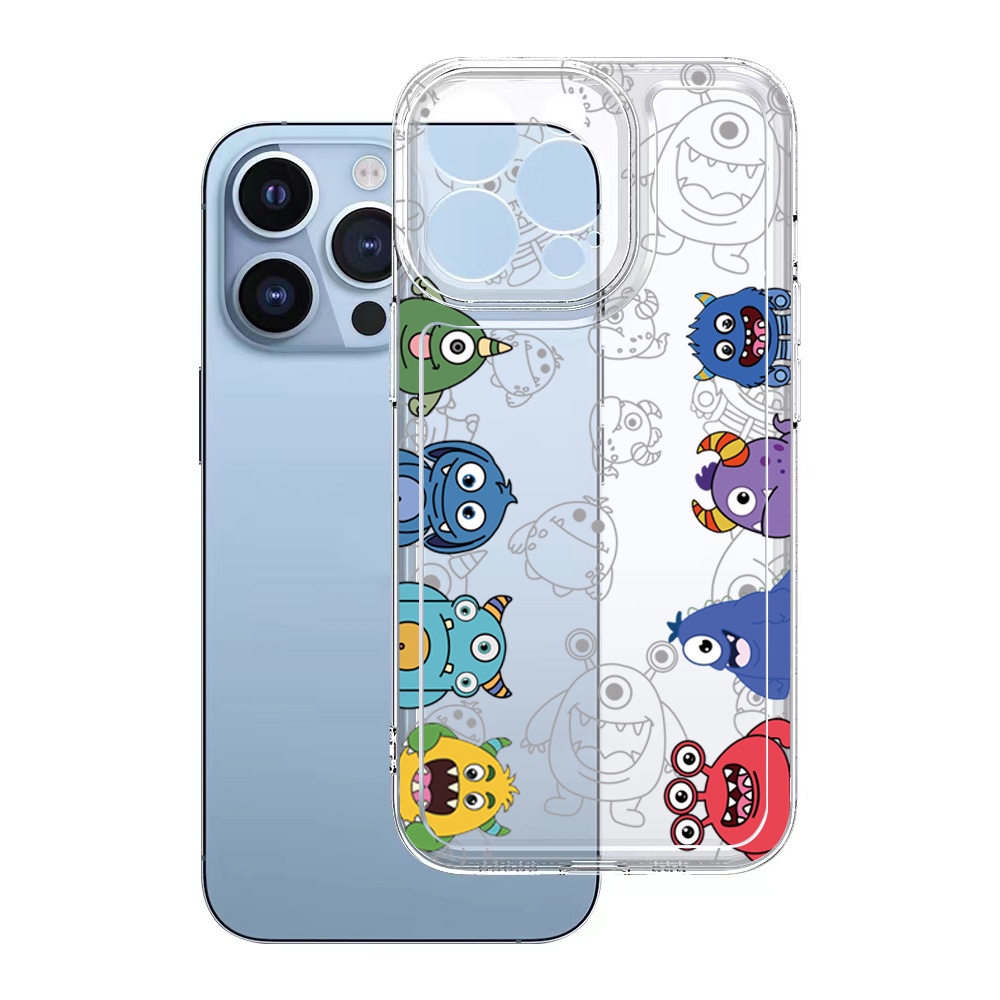 Ốp Điện Thoại TPU Gel Đệm Khí Chống Rơi Hình Gia Đình Quái Vật Màu Trong Suốt iPhone 13 Pro Max 14 12 11 XR 8 7 SE 2022