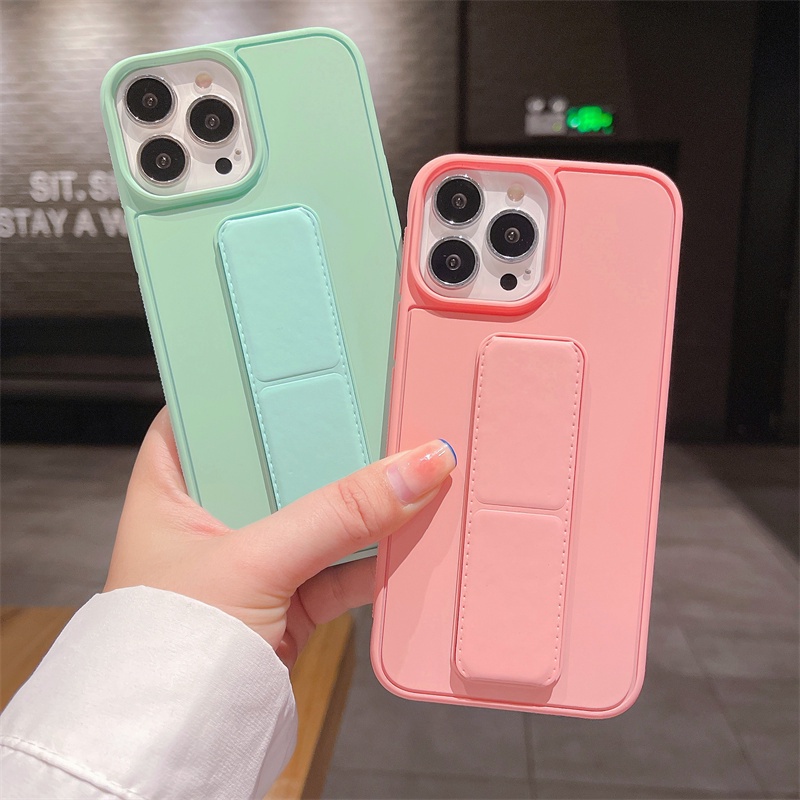 Ốp Điện Thoại tpu Lưng Da Trơn Màu Có Giá Đỡ Cho I-Phone 11 12 13 Pro Max Xr X Xs Max Se 2020 I-Phone 7 8 Plus