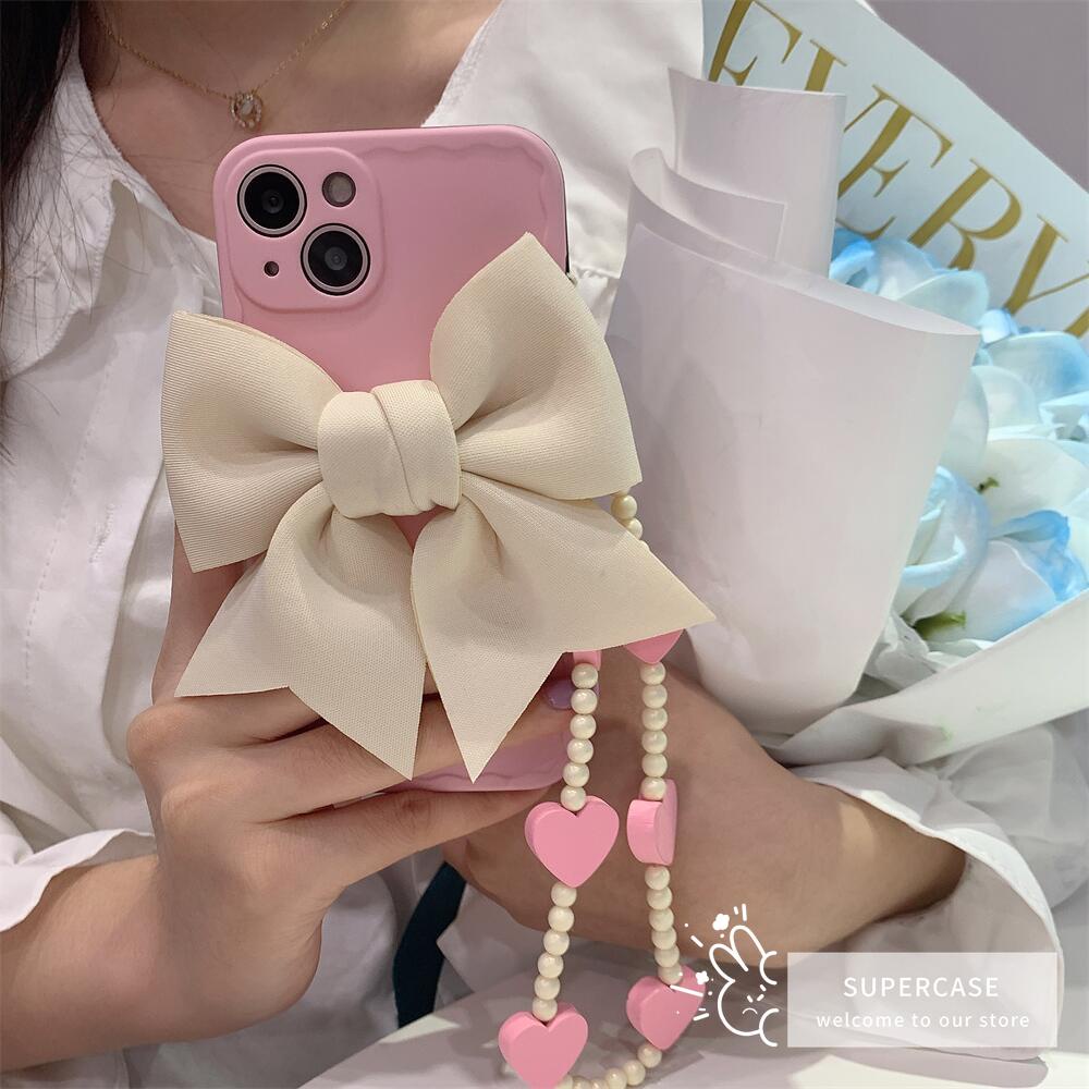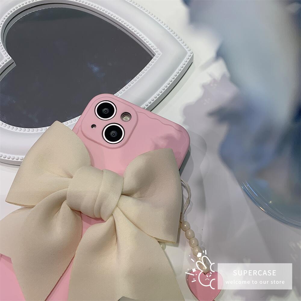 Ốp Điện Thoại TPU Mềm Đính Nơ Có Dây Đeo Tay Cho iPhone 13 12 11 Pro Max XR XS Max X