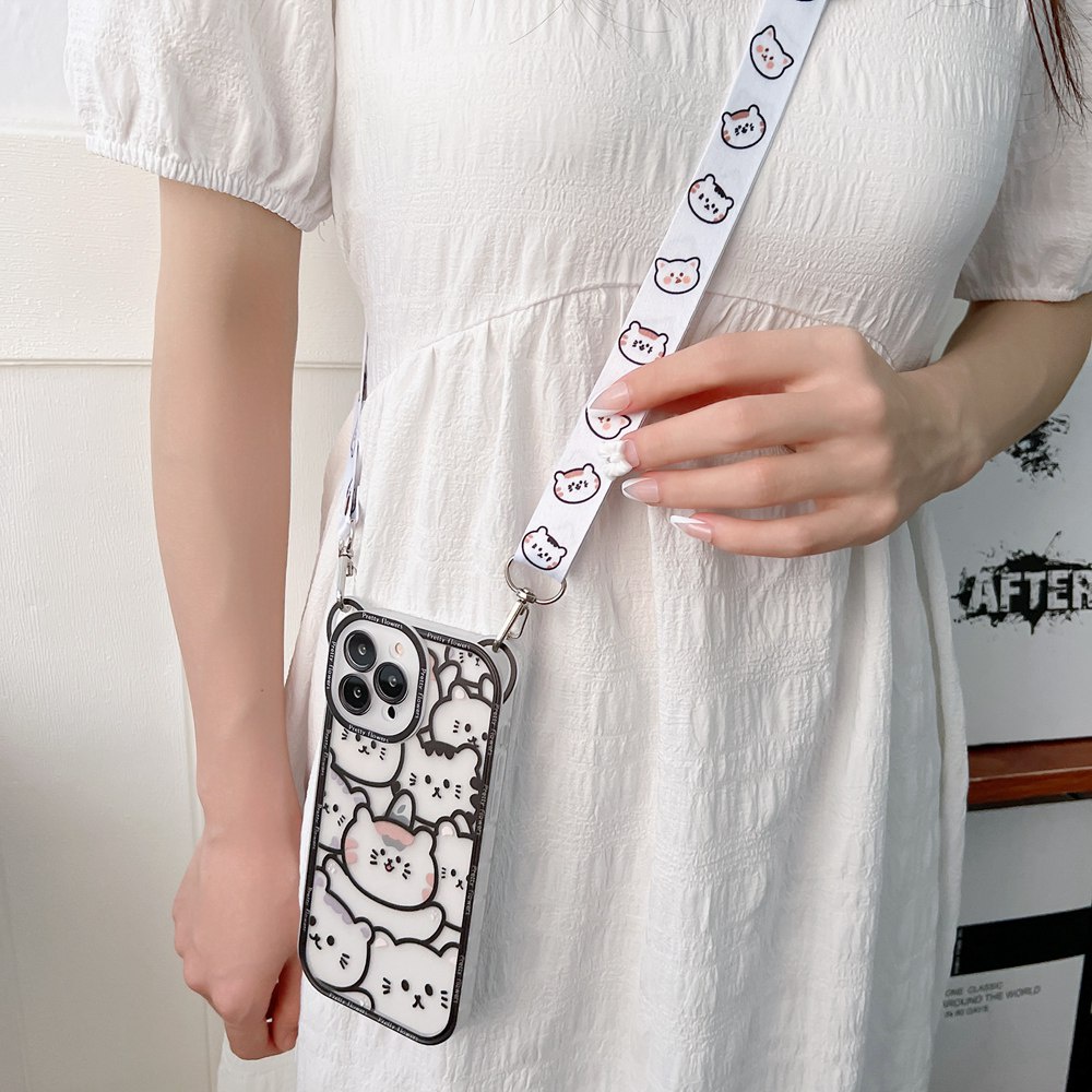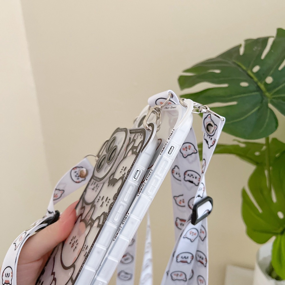 Ốp Điện Thoại Trong Suốt Hình Gấu Dễ Thương Có Dây Đeo Chéo Cho iphone 15 14 13 11 12 pro max x xs max 7 8 plus