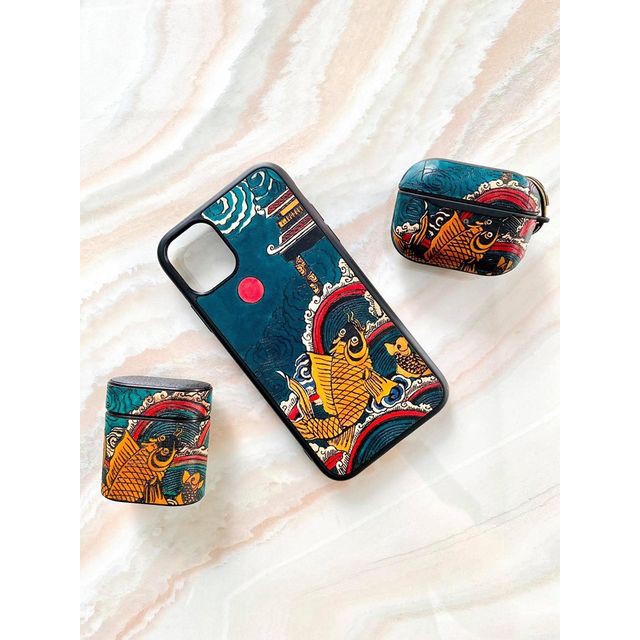 Ốp da Đỏ Case - mẫu Cá Chép vượt vũ môn nền xanh - Ốp iphone/samsung - Docase.vn