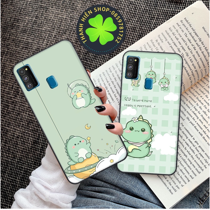 Ốp lưng điện thoại Samsung A02S - A03S - A21S - A31 - M21 - M30S - in hình khủng long lucky nền màu xanh mới nhất