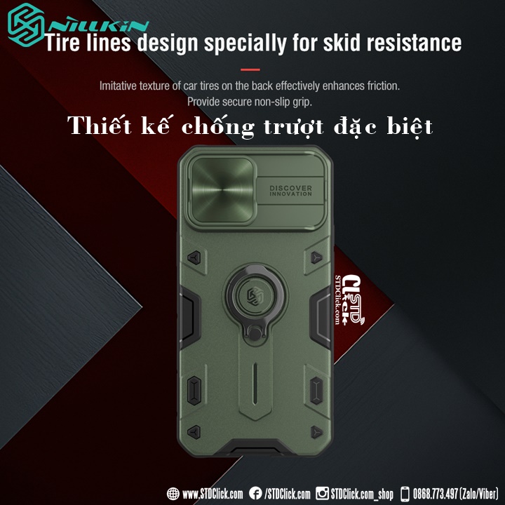 ỐP LƯNG IPHONE 13 PRO MAX - 13 PRO - 13 NILLKIN CAMSHIELD ARMOR CHỐNG SỐC BẢO VỆ CAMERA CHÍNH HÃNG ỐP LƯNG IPHONE 13 PRO MAX - 13 PRO - 13 NILLKIN CAMSHIELD ARMOR CHỐNG SỐC BẢO VỆ CAMERA CHÍNH HÃNG là phiên bản nâng cấp so với CamShield, có khoét táo và tích hợp thêm iRing. iRing bằng kim loại siêu chắc chắn, có khả năng tải lực đến hơn 5kg, cực kì an toàn ỐP LƯNG IPHONE 13 PRO MAX - 13 PRO - 13 NILLKIN CAMSHIELD ARMOR CHỐNG SỐC BẢO VỆ CAMERA CHÍNH HÃNG với phần viền thiết kế nhựa TPU dẻo chắc chắn, form ôm kín máy, chống sốc tốt, không làm trầy máy. Mặt lưng làm từ nhựa cứng PC cho form ốp chắc chắn, cầm bám tay, chịu va đập tốt Với cụm camera của dòng IPHONE 13 PRO MAX - 13 PRO - 13 vừa được ra mắt sẽ rất dễ trầy xước va chạm, hãng Nillkin đã nhanh chóng ra mắt sản phẩm ỐP LƯNG IPHONE 13 PRO MAX - 13 PRO - 13 NILLKIN CAMSHIELD ARMOR CHỐNG SỐC BẢO VỆ CAMERA CHÍNH HÃNG với hệ thống nắp trượt giúp bảo vệ camera 1 cách tuyệt đối. Hệ thống trượt nhẹ nhàng, dễ thao tác, không cần dùng lực, có khấc giữ khi khóa. Thiết kế cực kì thông minh vẫn đảm bảo được form chắc chắn của ốp ỐP LƯNG IPHONE 13 PRO MAX - 13 PRO - 13 NILLKIN CAMSHIELD ARMOR CHỐNG SỐC BẢO VỆ CAMERA CHÍNH HÃNG được sử dụng bằng những vật liệu nhập khẩu, an toàn với môi trường và được tạo hình bằng khuôn phun có độ chính xác cao, nhiệt độ lớn. Được chính hãng Nillkin thiết kế và sản xuất trên dây chuyền công nghệ tia cực tím hiện đại với các chi tiết hoàn thiện tỉ mỉ, sắc nét, đem lại cảm giác cầm cực kỳ chắn chắn, sang trọng, cho cảm giác sử dụng thoải mái, hình dáng đẹp, thanh lịch, tinh tế. Độ chắc chắn của ỐP LƯNG IPHONE 13 PRO MAX - 13 PRO - 13 NILLKIN CAMSHIELD ARMOR CHỐNG SỐC BẢO VỆ CAMERA CHÍNH HÃNG đạt độ bền vật lý cao nên rất khó bị vỡ, giúp bảo vệ điện thoại thông minh của bạn một cách an toàn khi không may bị rơi. Các lỗ loa và sạc được khoét chính xác cùng các vị trí phím âm lượng, phím nguồn cũng được cắt vát một cách tinh tế, tạo cảm giác sang trọng. Bề mặt lưng ỐP LƯNG IPHONE 13 PRO MAX - 13 PRO - 13 NILLKIN CAMSHIELD ARMOR CHỐNG SỐC BẢO VỆ CAMERA CHÍNH HÃNG được thiết kế dạng sần không trơn cho cảm giác cầm nắm dễ chịu, chống vân tay, mồ hôi, bụi và chống trượt nên có thể dễ dàng làm sạch. Thông số kỹ thuật ỐP LƯNG IPHONE 13 PRO MAX - 13 PRO - 13 NILLKIN CAMSHIELD ARMOR CHỐNG SỐC BẢO VỆ CAMERA CHÍNH HÃNG: - Model: CamShield Armor - Dòng máy tương thích: IPHONE 13 PRO MAX - 13 PRO - 13 - Vật liệu: TPU và PC - Màu sắc: Đen, Xanh Rêu, Xanh Navy Giao hàng và tiện lợi thanh toán luôn là điều tối quan trọng trong quyết định mua hàng của bạn. STDClick khuyến khích C.O.D 100% để bạn có thể thanh toán khi nhận hàng. Cực kỳ tiện lợi và đơn giản. Thông tin liên hệ Shop: Điện thoại tư vấn : 0868.773.497 (Zalo, Viber, Line) để được tư vấn về sản phẩm bạn sắp đặt hàng. Open - Close : Tư vấn trực tuyến liên tục hàng ngày Website : www.stdclick.com Email : cskh.stdclick@gmail.com hoặc hotroshop79@gmail.com