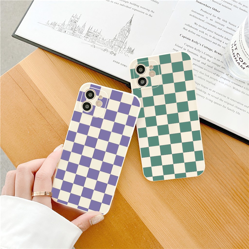 Ốp lưng iphone Caro xanh viền vuông bảo vệ camera cho ip 6splus/7/7plus/8/8plus/x/xr/xs/11/12/pro/max/plus/13prmax e190