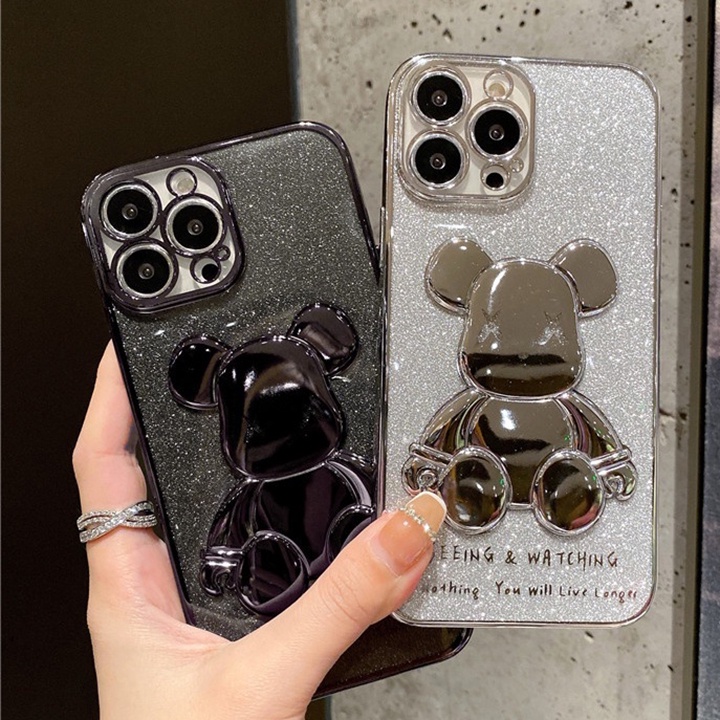 Ốp Lưng iphone Gấu Bearbrick Viền Xi kim tuyến in 3D bảo vệ Camera cho IP 6 6s 7 8 Plus SE X XS XS Max 11 12 13 Pro Max