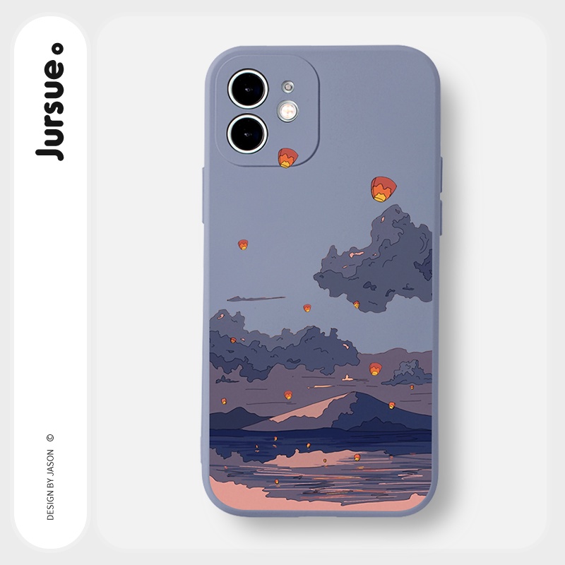 Ốp lưng JURSUE mềm chống bẩn hình dễ thương đẹp đen cho iPhone 13 12 11 Pro Max SE 2020 X XR XS ip 8 7 6 6S Plus Y63