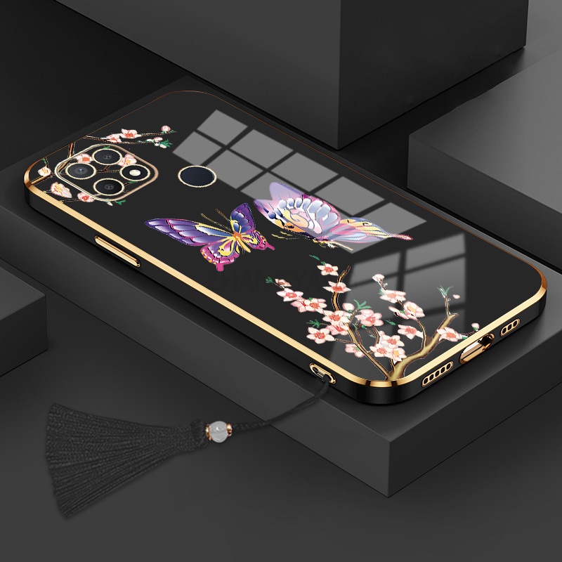 Ốp lưng oppo a15 a15s Ốp Điện Thoại Silicon Họa Tiết Bươm Bướm Kèm Dây Đeo Cho oppo a15 a15s