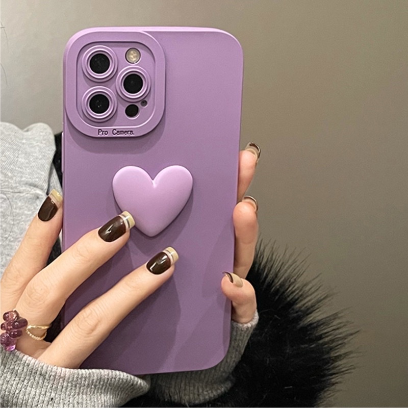 Ốp lưng pro camera màu tím & đen hoạ tiết trái tim nổi dành cho ip