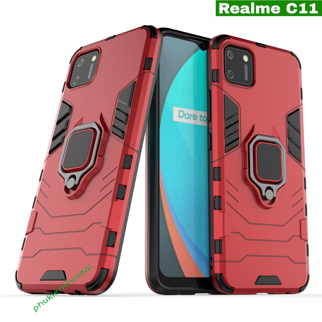 Ốp lưng Realme C11 / Realme C33 / Realme C53 Iron Man Iring chống sốc cao cấp giá đỡ xem phim nhựa PC cứng viền dẻo