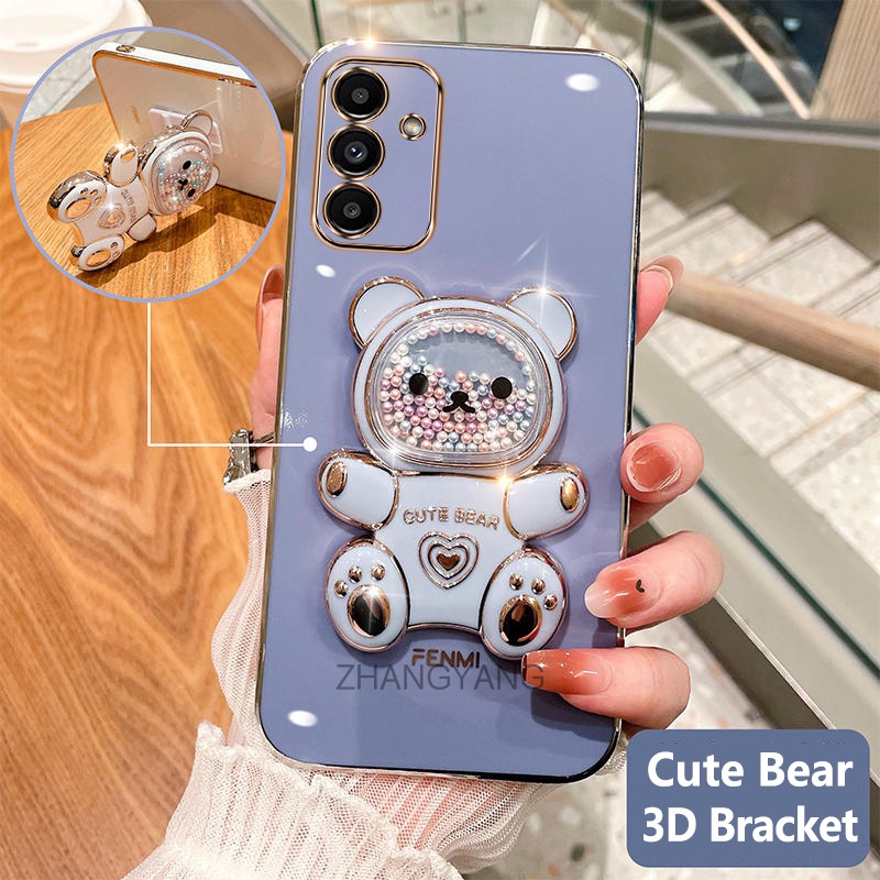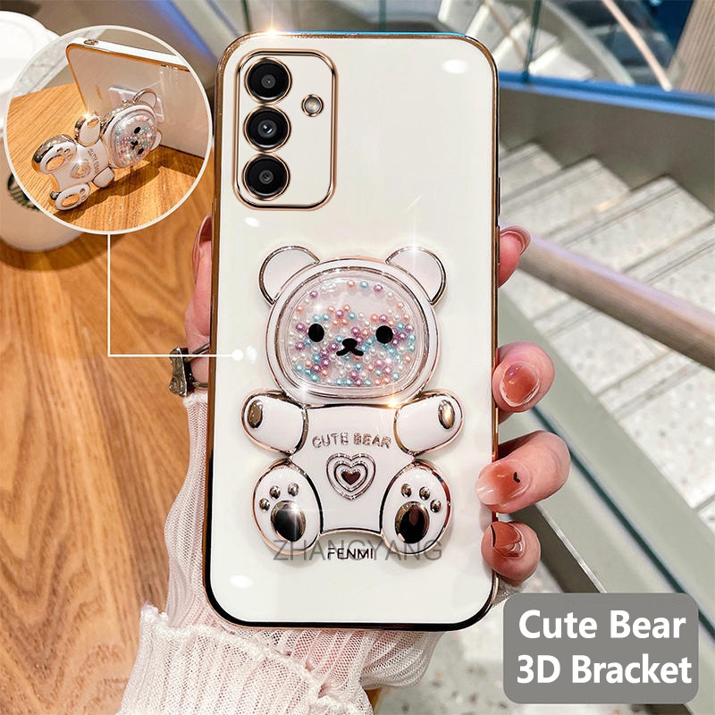 Ốp lưng samsung a14 a24 a34 a54 Ốp Điện Thoại tpu Dẻo Mạ Màu 3D In Hình Gấu Nhỏ Đáng Yêu Có Giá Đỡ Cho samsung a14 a24 a34 a54