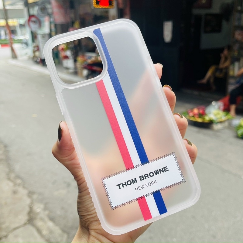 Ốp likgus nhám Thom Browne cho iPhone 14 Pro Max, 13 Pro Max, 12 Pro Max, 11 chống Vân tay viền mềm ôm máy chống sốc