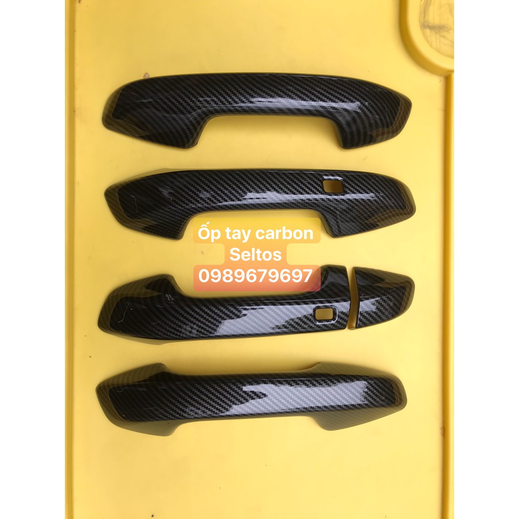 Ốp tay nắm cửa , hõm cửa KIA SELTOS 2020, NHỰA vân carbon ABS cao cấp