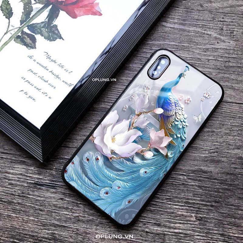 Ốp tráng gương iphone họa tiết hình con công cực đẹp ốp lưng kính cho iphone 6 đến 11 promax 13 pro max SE2020 k275