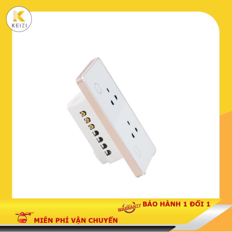 Ổ cắm thông minh đôi âm tường zigbee Tuya, Ổ điện zigbee tuya viền vàng cao cấp