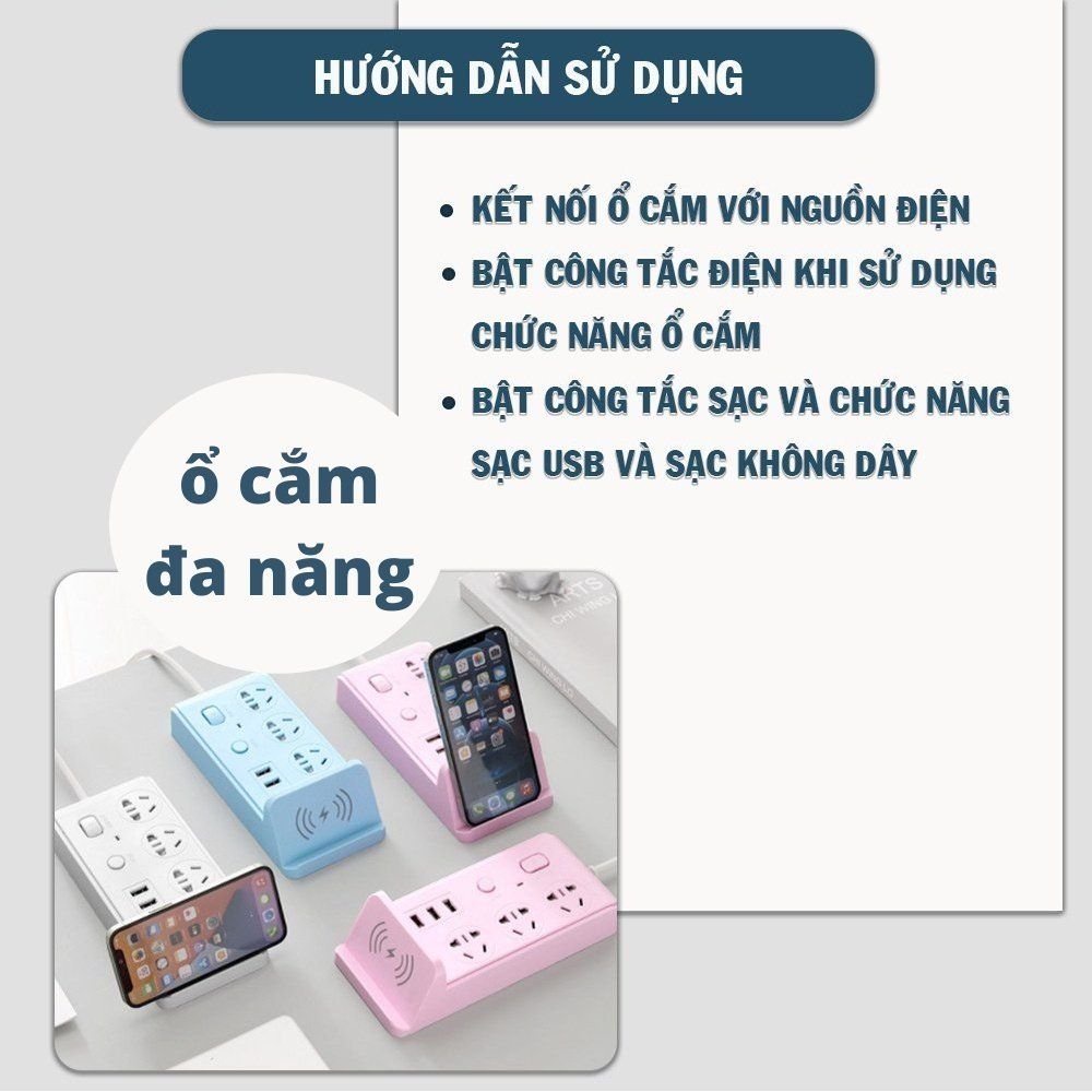 💙Ổ Cắm Điện Đa Năng Có Sạc Không Dây Kèm Đầu Cắm USB💙 JUINSTORE - MUA HÀNG UY TÍN - BÁN HÀNG CHẤT LƯỢNG - DÙNG CẢ TẤM LÒNG TƯ VẤN KHÁCH HÀNG ======================== ✅✅ THÔNG TIN SẢN PHẨM - Điện áp tối đa: 250V - Dây điện: 1.8m - Đầu vào: 100-240V - Giới hạn tối đa